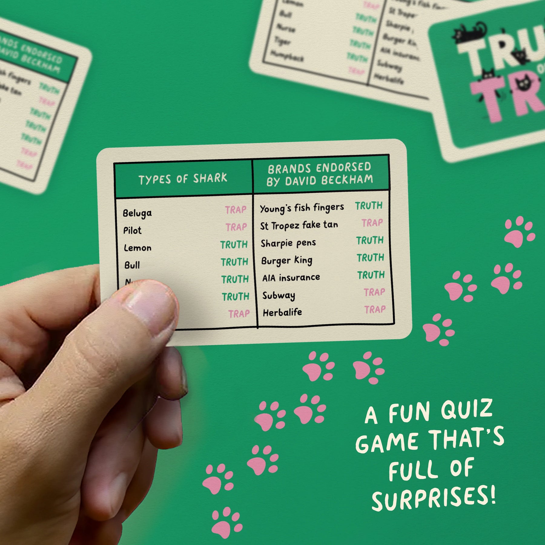 Truth or Trap is a fast and fur-ious quiz game full of surprising facts, sneaky traps, and a touch of feline mischief.
