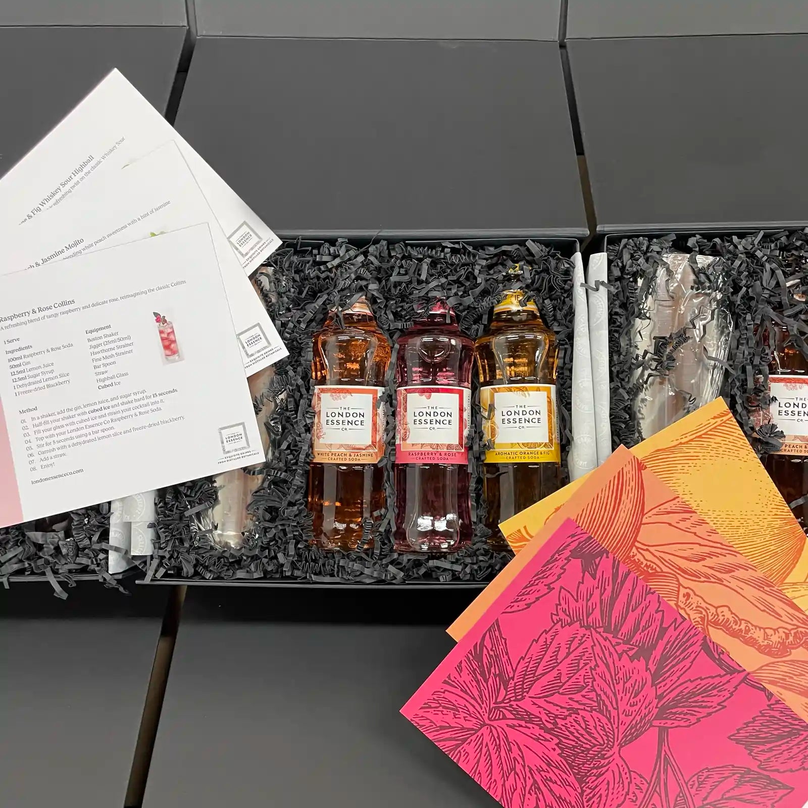 Pre-order the London Essence Crafted Soda Cocktail Gift Set, featuring three serves and a complete advanced bar equipment set, showcasing the beautifully refined flavours of Aromatic Orange & Fig, Raspberry & Rose, and White Peach & Jasmine.