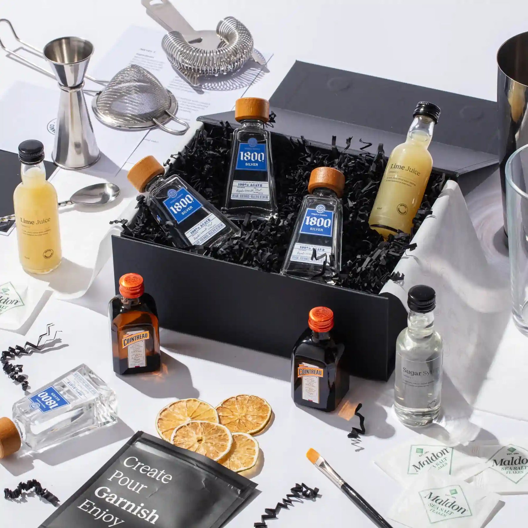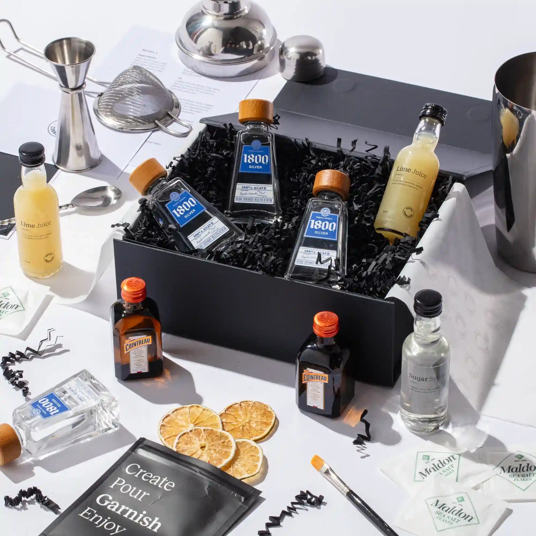 Transform your home into a cocktail haven with our Margarita Gift Set. Featuring premium tequila, triple sec, lime juice, sugar syrup, dehydrated lime, sea salt, and a brush to rim your glass, this set allows you to craft four perfect Margaritas at home. Our kit includes detailed recipe cards and a tutorial video for a flawless mix every time. Elegantly packaged in a stylish gift box, it's ideal for any occasion. Order your Margarita Cocktail Kit now and enjoy the ultimate Margarita experience, perfect for any tequila lover!