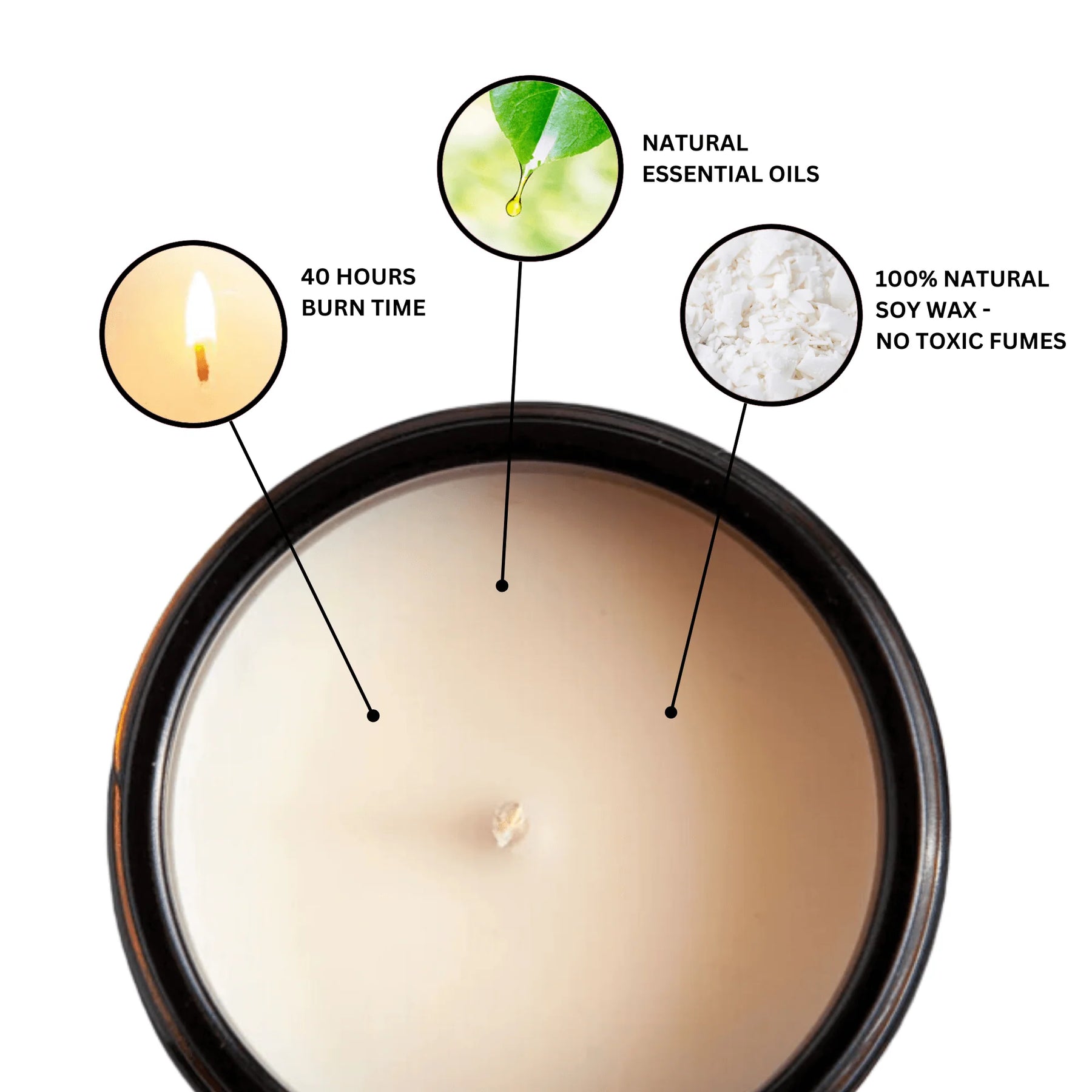 Each candle is hand poured and made from high quality natural soy wax and premium essential oil - no nasty ingredients. The candles are large size (9.5cm x 7cm) with 200 g of soy wax and generous burn time of 40 hours. The cotton wick ensures a clean, even burn, while the included tin lid keeps your candle fresh and protected.