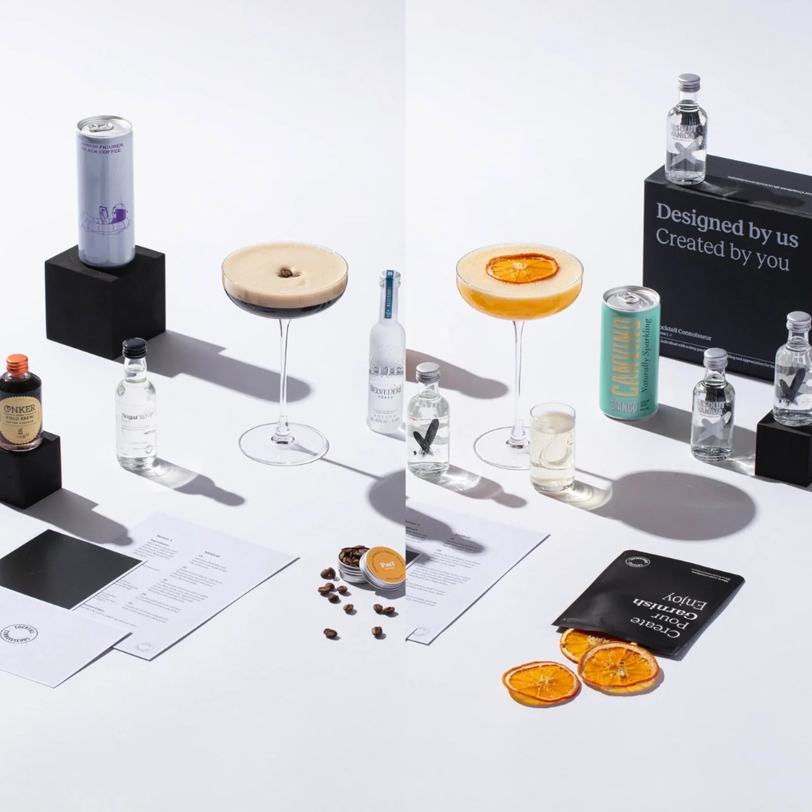 Experience your favourite cocktails in perfect harmony with our Signature Duo: Pornstar Martini & Espresso Martini Gift Set. Effortlessly craft two Pornstar Martinis and two Espresso Martinis from the comfort of your home. This luxurious set includes premium spirits, artisanal mixers, and elegant garnishes, delivering a truly indulgent experience. Complete with a step-by-step recipe card and exclusive tutorial video, all beautifully packaged in a luxury gift box, it’s the perfect gift or treat. Elevate your cocktail creations with optional bar equipment, ideal for both beginners and seasoned mixologists, and savour the art of mixology at its finest!