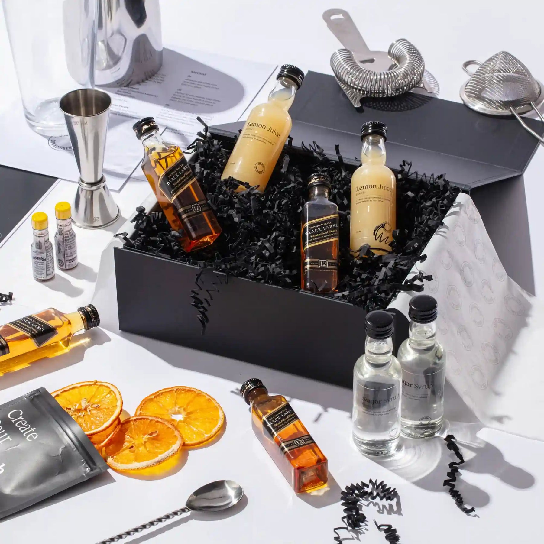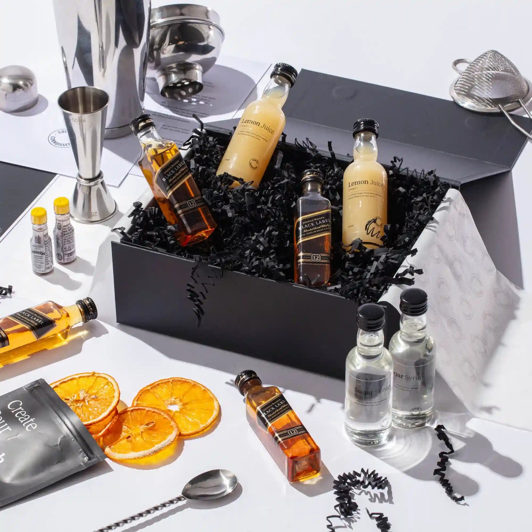 Discover our Whisky Sour cocktail making kit, the perfect Whisky gift set for cocktail enthusiasts. Craft 4 bar-quality Whisky Sour cocktails at home with premium spirits, mixers, syrups, juices, garnishes, recipe cards and tutorial videos - all packaged in an elegant presentation box and delivered to your doorstep. Elevate your experience by choosing our 2-in-1 cocktail kit with bar equipment sets. Order your Whisky Sour cocktail kit today!