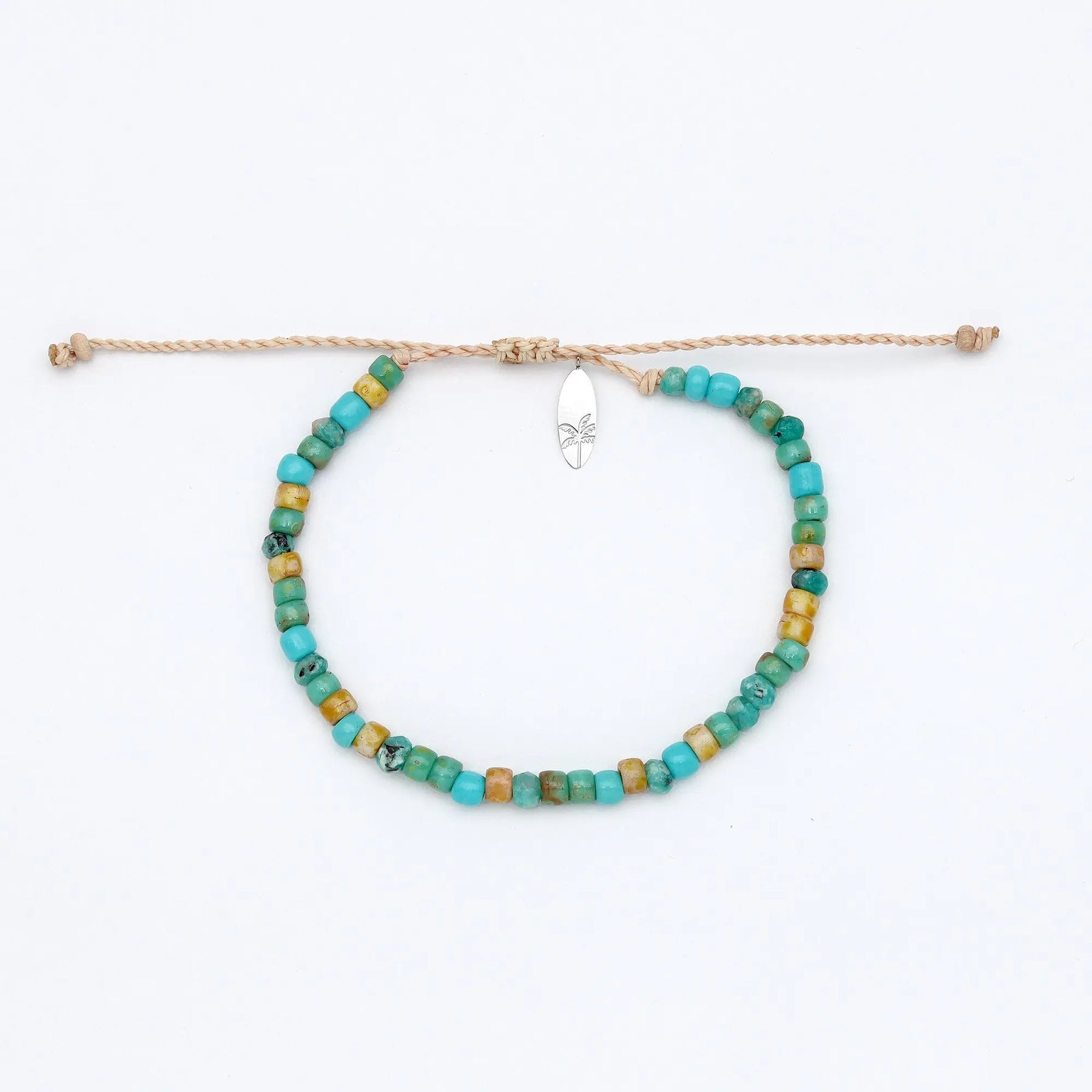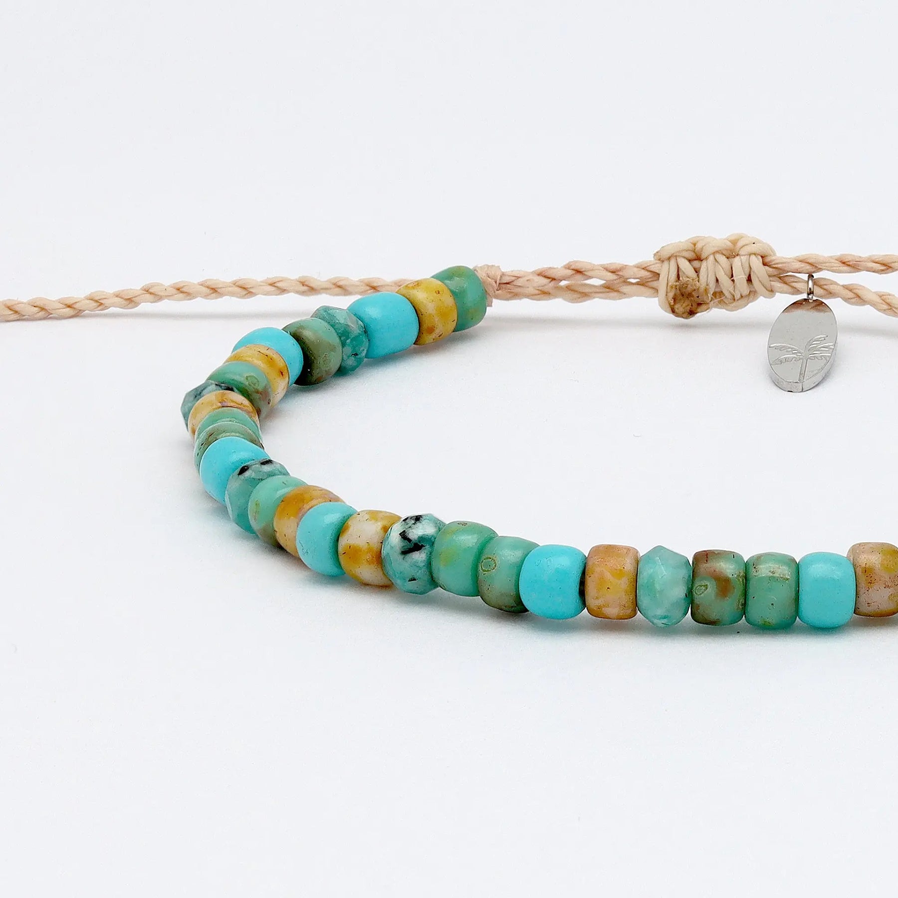 - Made with natural stone beads strung on a wax polyester cord, finished with our signature stainless steel charm.