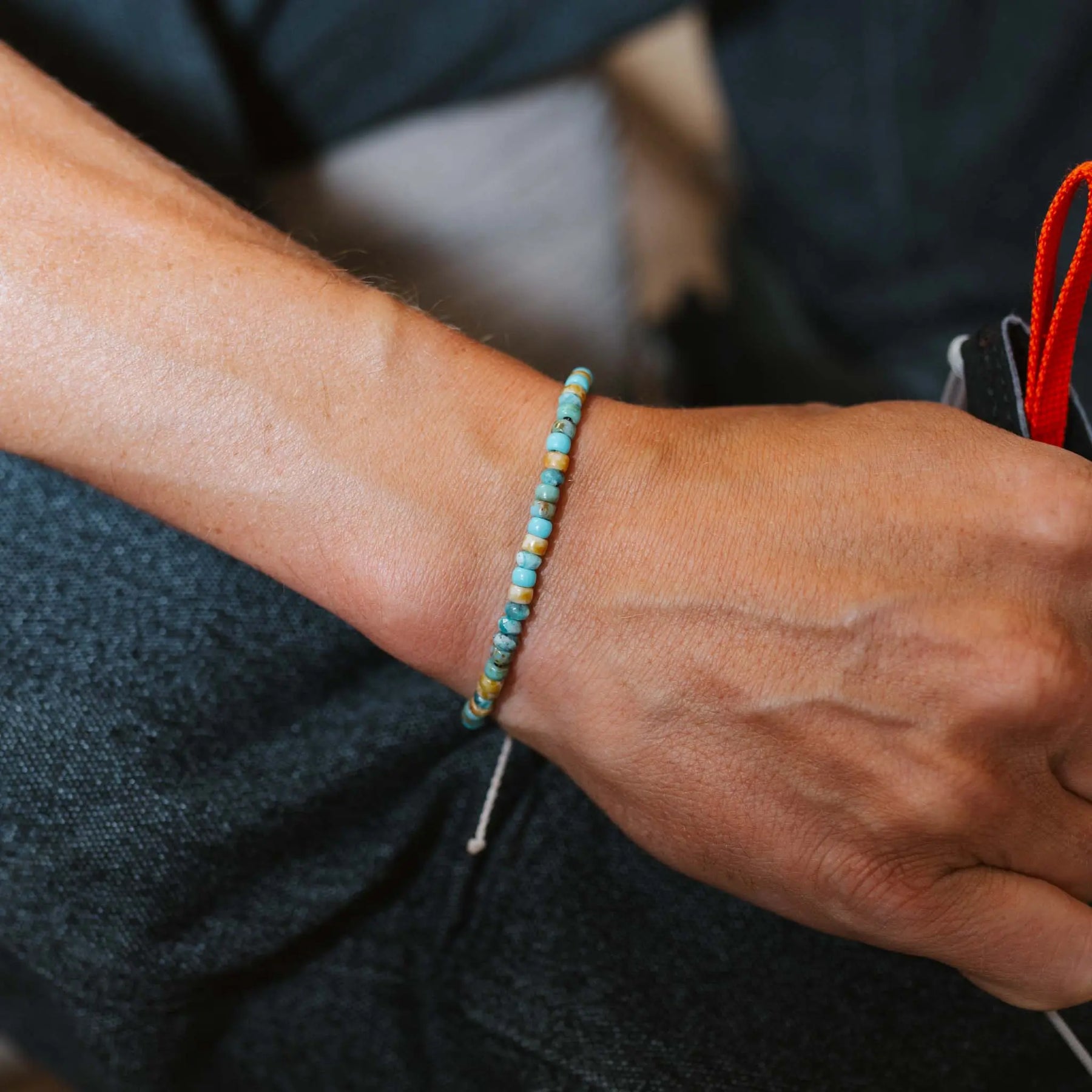 Flowing from the glaciers of Mont Blanc through the heart of Chamonix, the Arve River inspires this stone bracelet with its mix of turquoise and earthy golden hues. Hand-strung with natural stones that echo rushing alpine waters and sunlit riverbanks, the Arve River Stone Bracelet brings a touch of wild mountain energy to your everyday adventures. Adjustable and versatile, it’s perfect for travellers and winter wanderers alike.